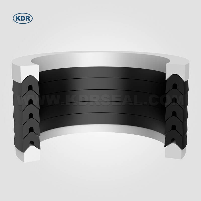 V系列密封圈是夹布织物结构,由橡胶的织物模压而成。通常由支撑环、密封环和压环三个部件组成,可根据压力大小用数个密封环迭合起来使用(通常为7个)。V形密封圈可使用于高压、大直径、高速度、长行程等苛刻工况下。可作轴用、也可作孔用密封用。 主要特点: 1、密封性能好,安装方便; 2、耐冲击压力; 3、允许较大的挤出间隙; 4、可根据工况选择V型圈件数主要材料:PTFE,PEEK.丁腈橡胶(NBR)、氟橡胶(FKM)氢化丁腈橡胶(HNBR)棉布织物(FABRIC)或芳纶布
